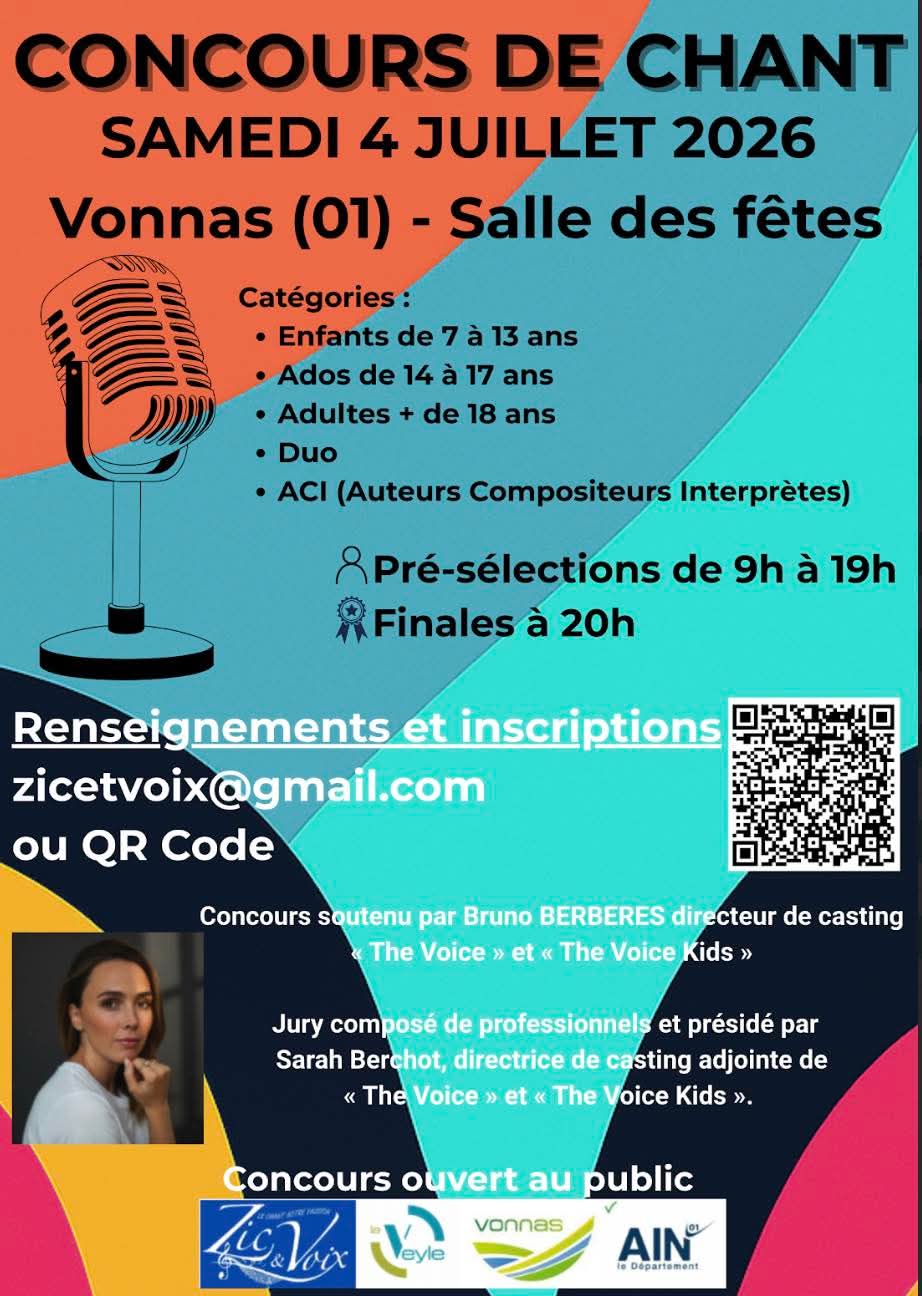 Vous rêvez de vivre l’émotion d’un concours de chant comme dans l’émission The Voice ? Ne manquez pas « Révélation Voix », le grand concours de chant de Fontaines Saint Martin, une journée exceptionnelle placée sous le signe de la musique et du talent !